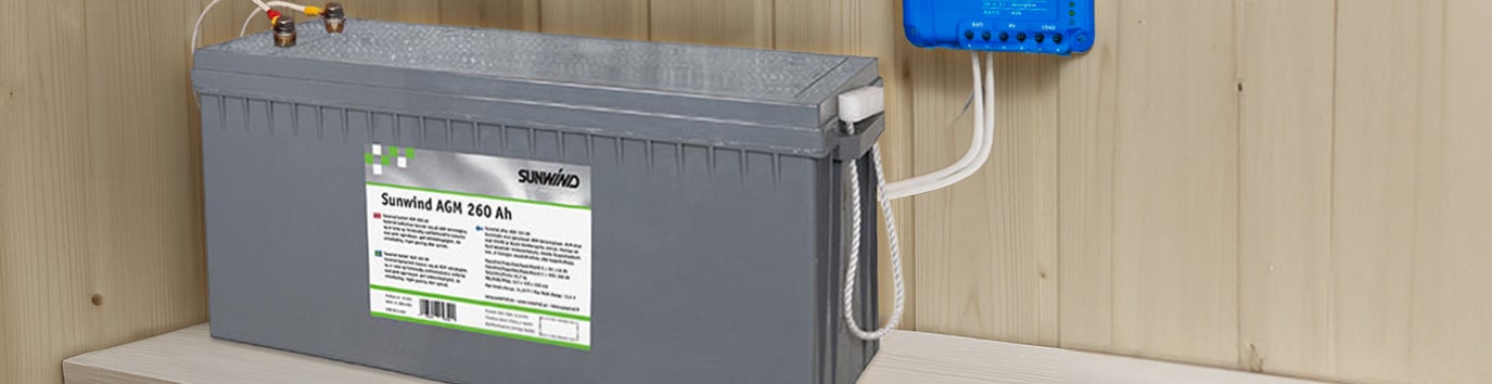 Sunwinds AGM-batterier är robusta och underhållsfria. AGM-tekniken (Absorbent Glass Mat) innebär att elektrolyten är absorberad i glasfibermattor, vilket gör batteriet slutet och säkert i drift. Batterierna har en låg självurladdning (cirka 2 % per månad) jämfört med traditionella blybatterier, samt god laddningsmottaglighet och lång livslängd vid måttlig användning. Det gör dem idealiska för fritidshus, båtar och husbilar där man vill ha en enkel och driftsäker batterilösning utan behov av frekvent underhåll.